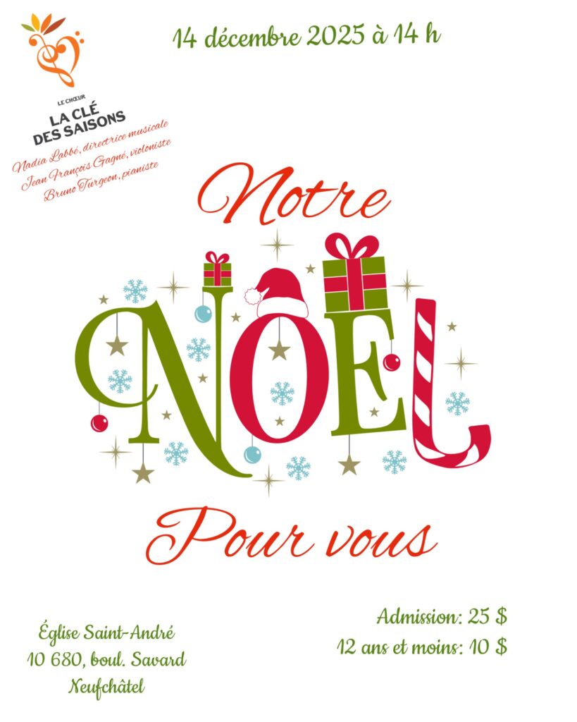 Nous avons du plaisir à chanter pour vous et à vous partager notre joie de vivre! On se donne rendez-vous pour notre concert de Noël, le 14 décembre 2025 à l’église Saint-André à 14 h.